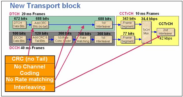 图4  为 33.6 kbps RMC改进的DTCH帧     这一信道设置有效地去除了系统中的纠错编码,同时也把数据率从12.2kbps增加到33.6kbps,从而实现更快的BER测试。这一误码结果还有助于更精确地评估UE的实际RF和解调性能。当把BER与基于12.2 kbps RMC的测量比较时,就也能评估信道的编码增益。